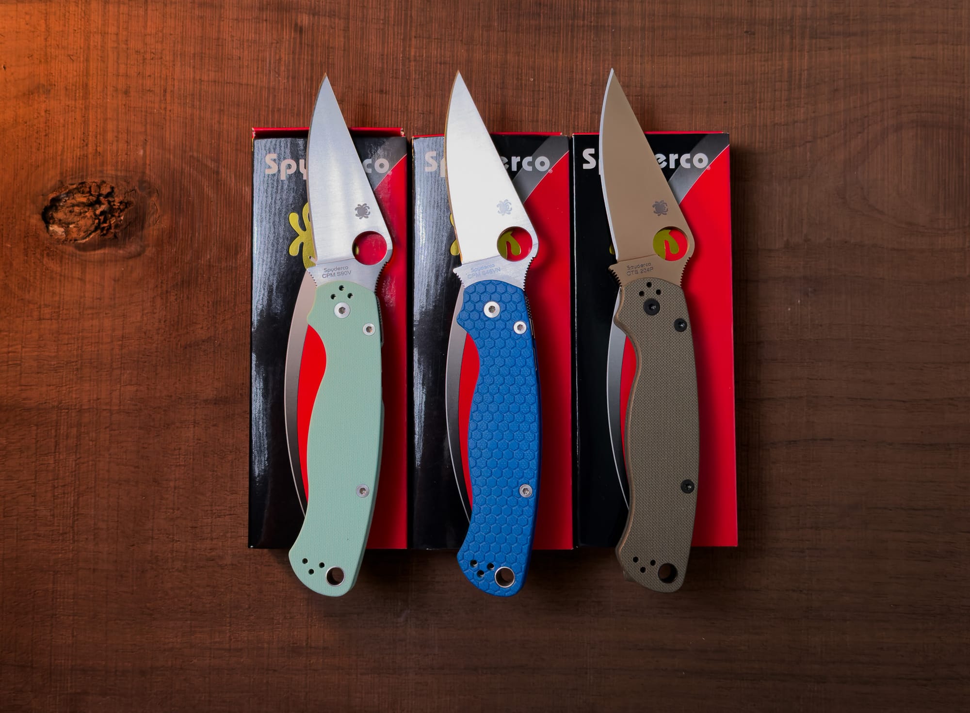 - Spyderco Para 3 - All the DNA of the PM2, dialed down for tighter carry. The Para 3 keeps Spyderco's beloved Compression Lock and premium steel in a more compact package — the perfect choice when you want full-size performance without the bulk. Also comes in various lightweight models!