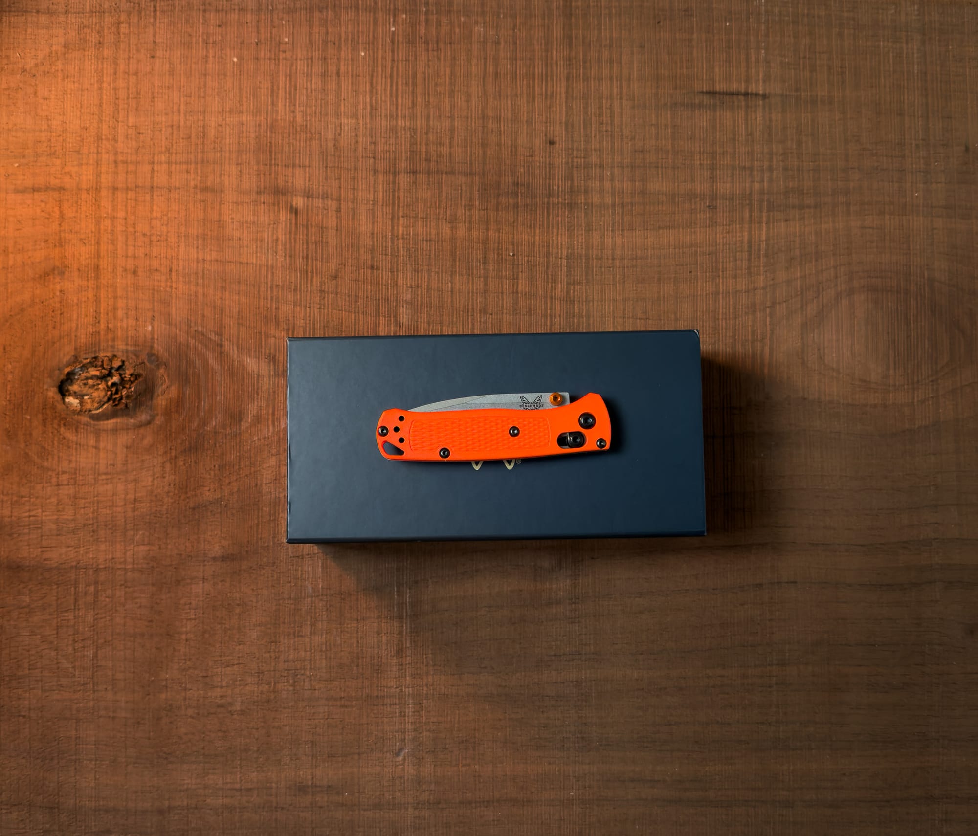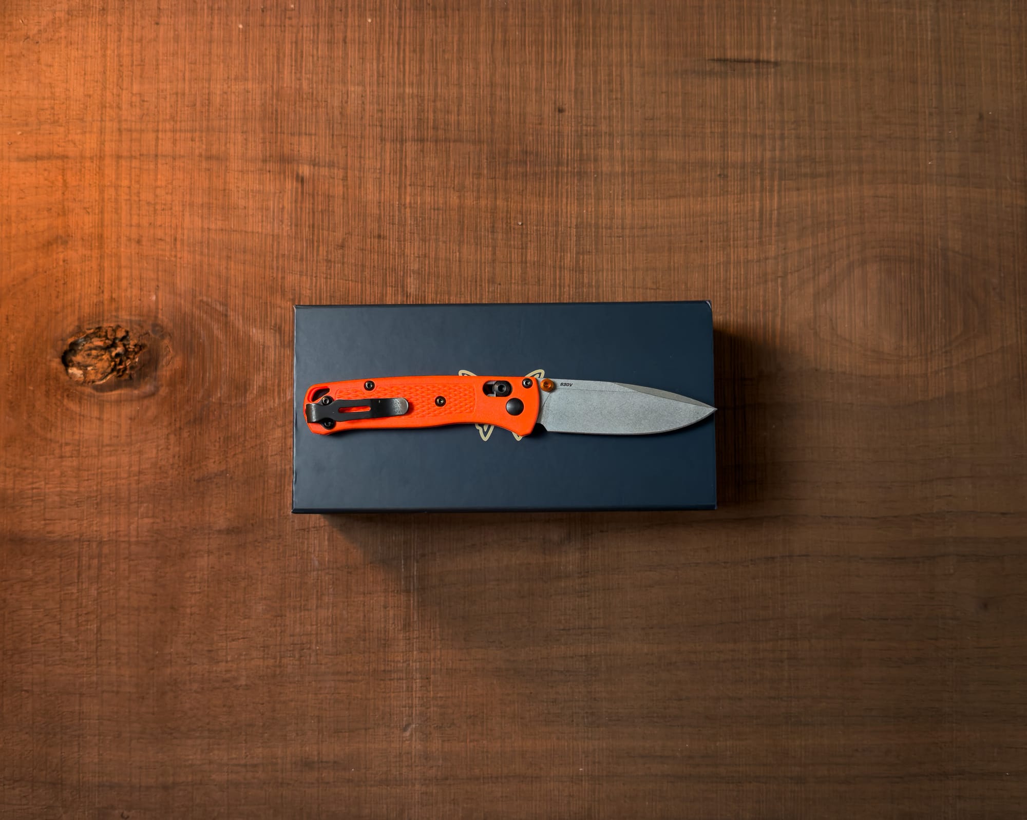 - Benchmade Bugout Mini - Featherlight and ready for anything. The Mini Bugout trims down Benchmade's iconic design into an ultra-slim, weight-conscious carry with the crisp AXIS Lock action and quality craftsmanship that Benchmade is known for.